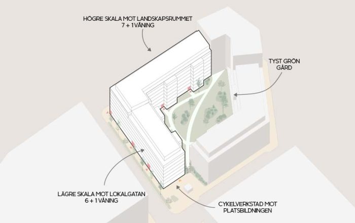 Familjebostäders kv. Tåsjön går nu in i Systemhandling. Vi är glada att arbeta vidare med projektet som består av bostäder och förskola inom en triangulär tomt i en spännande del av staden.