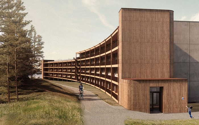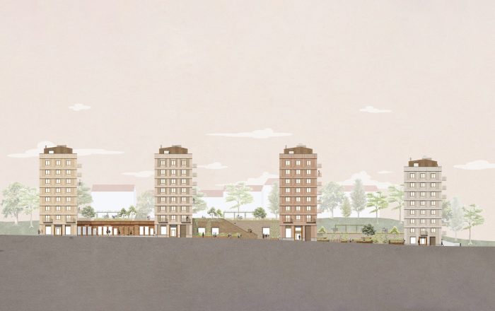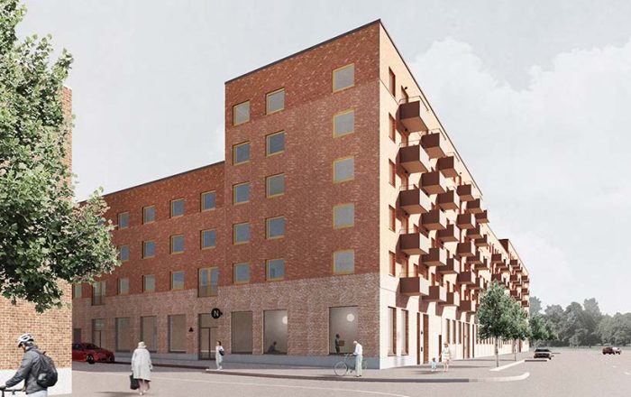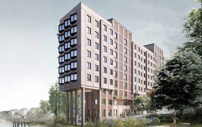 En hållbar stadsdel med öppna stadsrum och kompakta byggnader med utblickar.