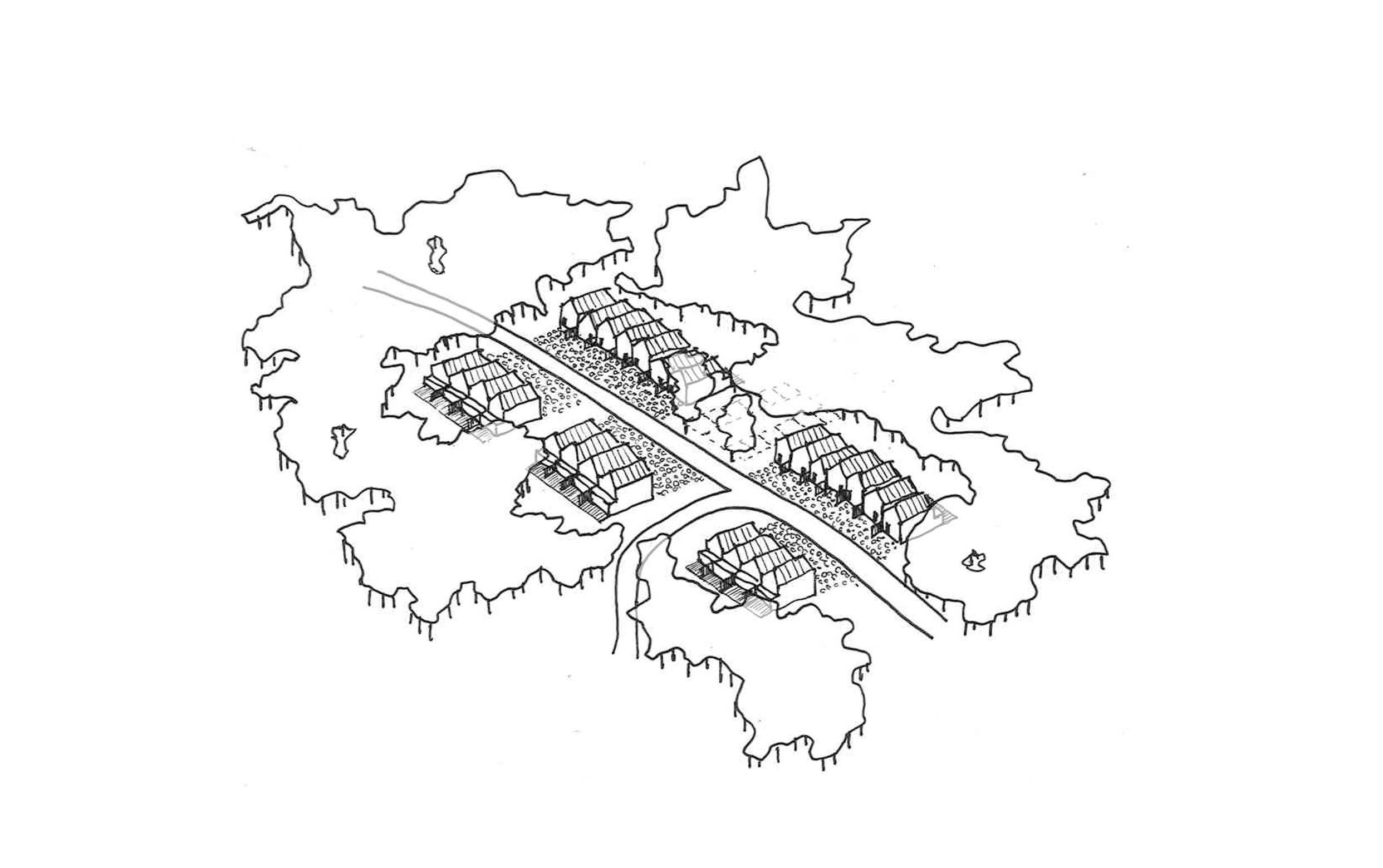 På randen mellan Brunns befintliga bebyggelse och den vidsträckta skärgårdsnaturen utvecklas ett nytt bostadsområde med en naturnära bebyggelse integrerad i den dramatiska topografin. Bland hällmark och tallskog planeras för radhus, parhus och småskaliga flerbostadshus. Bebyggelse- och gatustrukturen anpassas varsamt efter befintliga stigar och platsens varierade terräng med dalgångar, berghällar och mäktiga träd.